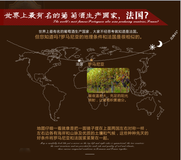 罗马尼亚是旧世界葡萄酒生产国之一,有着悠久的葡萄酒酿造传统,传说中的酒神狄厄尼索斯就降生在罗马尼亚的Thracia,因为酒神的光顾,罗马尼亚便成为世界上生产好酒的国度之一。同时,世界第四大葡萄酒生产国的身份,也让罗马尼亚在国际葡萄酒生产国中占据了重要一席。在世界葡萄酒纷纷转向中国市场的时候,罗马尼亚的葡萄酒也紧随法国、西班牙、意大利、德国、智利等国家的脚步,开始了向中国市场的“运动”。因为罗马尼亚优越的地理位置和气候条件,其所生产的葡萄酒品质优良,在罗马尼亚葡萄酒向中国市场转向之后,有人对此形容说:罗马尼亚的一滴好酒,已来到了中国。